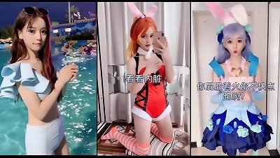 Aisan college girl loves to cos and live her rosy twat for showcase